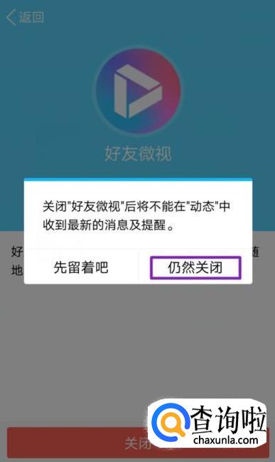 弹出的界面,我们点击仍然关闭就可以关闭好友微视了。