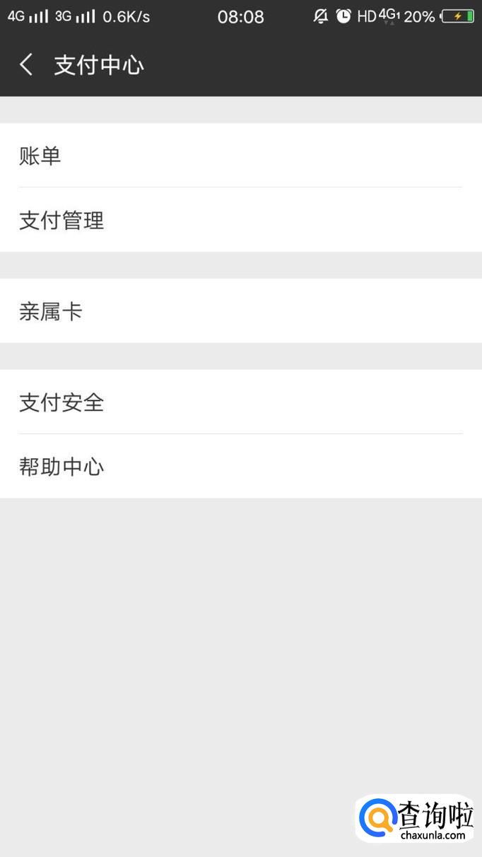 点击后,可以看到弹出以下界面,在众多选项中,有“亲属卡”这一栏,点击“亲属卡”。