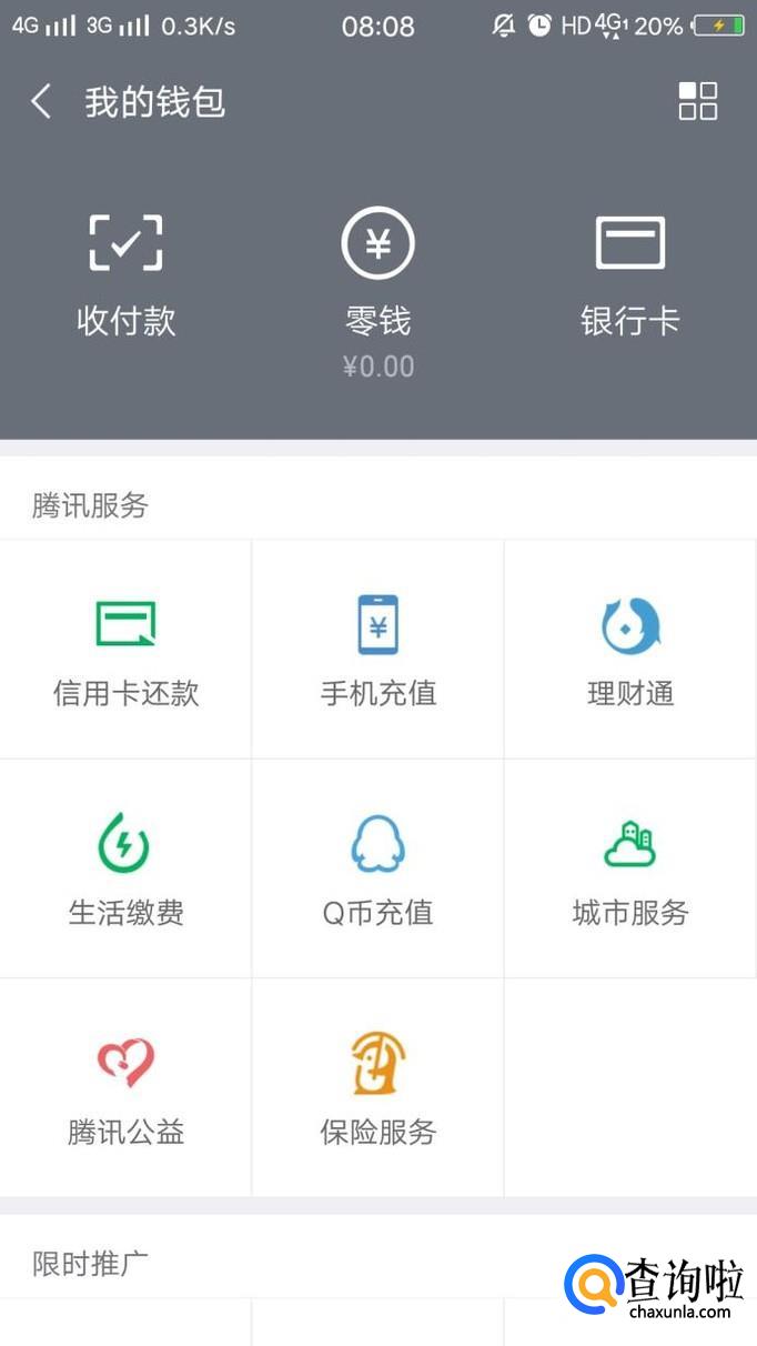 打开微信,点击“我”,进入“钱包”界面,可以看到以下的图片。点击右上角的四小方格组成的按钮。