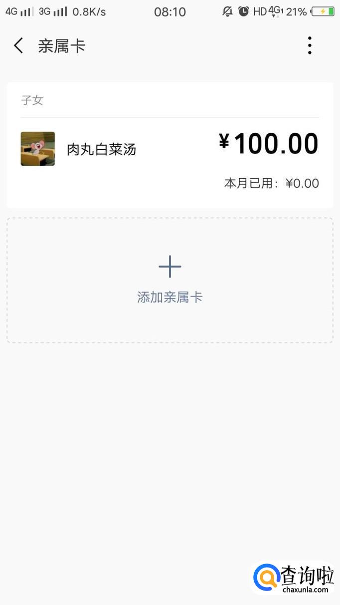 可以看到你的微信号已经绑定的亲属卡,点击界面中这张卡所显示的相信信息部分,会跳转到以下界面。