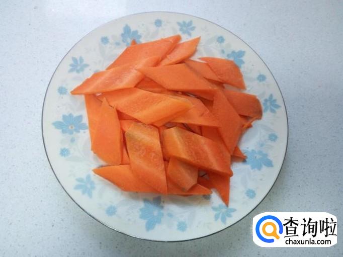 胡萝卜去皮,用水清洗干净,切成片。切好葱,姜,蒜,备用。