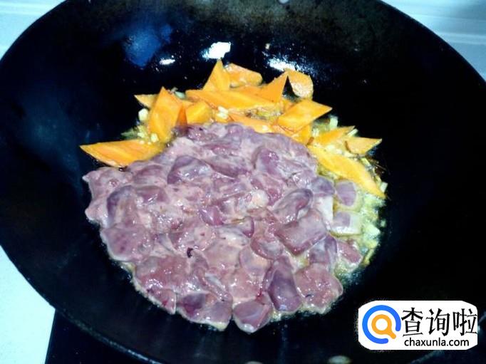 放入鸡肝翻炒,放入醋,料酒,酱油,少许白糖。