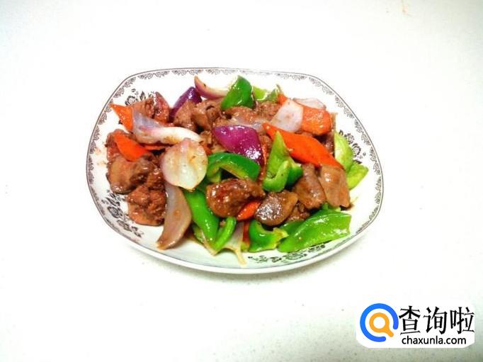 鸡肝 500克 ,圆葱 1个 ,青椒 (麻辣)1个 ,胡萝卜 半根 。