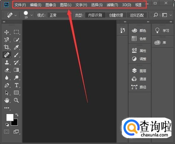 首先,打开PS CC2018,先认识下界面,顶部“文件、编辑、图像……”这里是菜单栏,每条菜单栏有特定的功能。