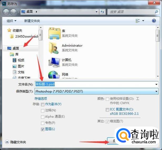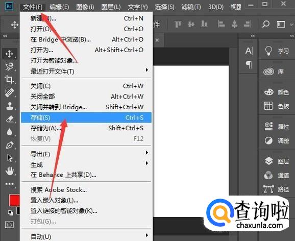 完成后点击文件菜单,存储,在弹出的对话框中选择保存位置如桌面,再输入文件史,再点击保存。上面就是一个基础简单例子,给大家演示了菜单,工具栏,属性栏,面板的使用。
