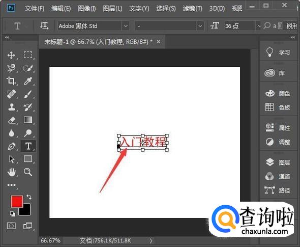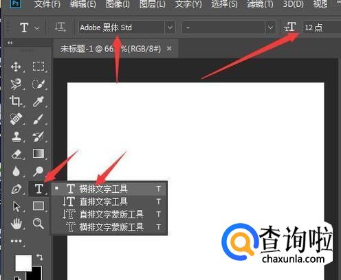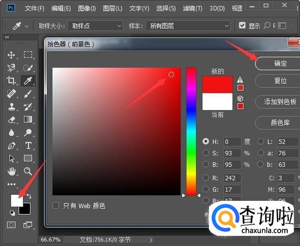 接下来击T工具,选择横排文字工具,在属性栏设置字体,字号大小。再点击前景色工具,点击红色处确定。