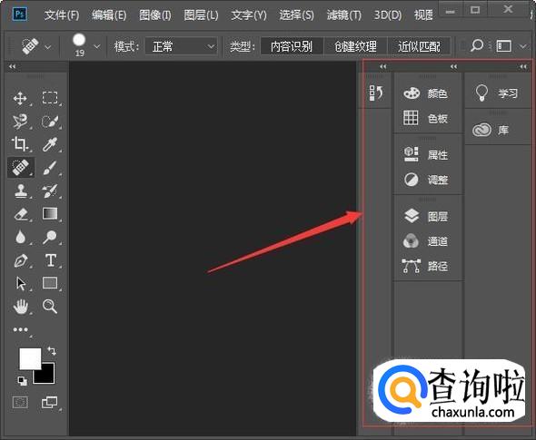 右侧是控制面板,点击其中一项,会向左弹出面板,点击面板上的收缩按钮,可以收缩面板。