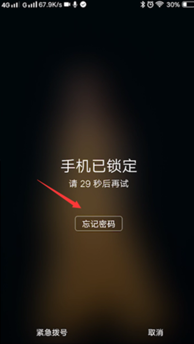 2、弹出“手机已锁定”后,可点击屏幕上的“忘记密码” ,输入密保修改锁屏密码;