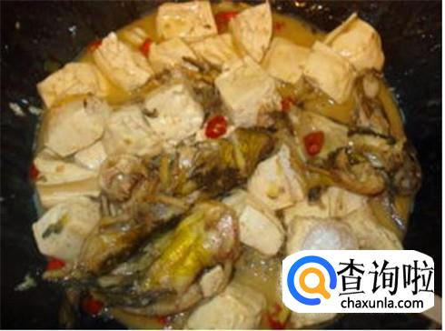 豆腐切成小块用淡盐水焯一下,黄丫头炖大概十五分钟左右,把豆腐放进去一起煮,直到锅里的汤汁变成白白的,加食盐调味,加把香菜或者葱花出锅就行了。