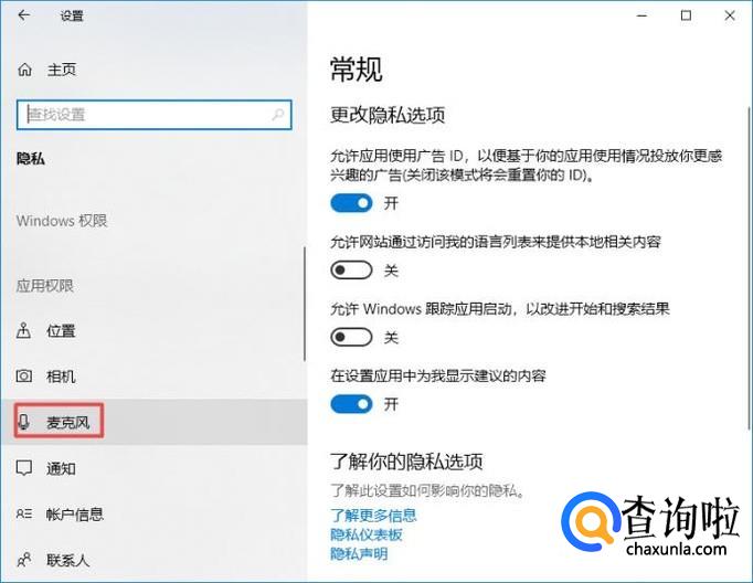 弹出的界面,我们点击隐私;