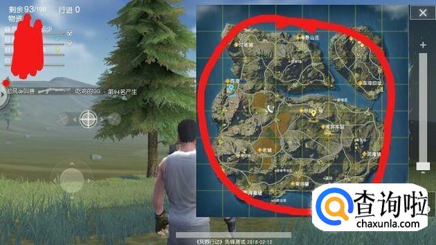 首先跳伞降落后,打开屏幕右上方的小地图。