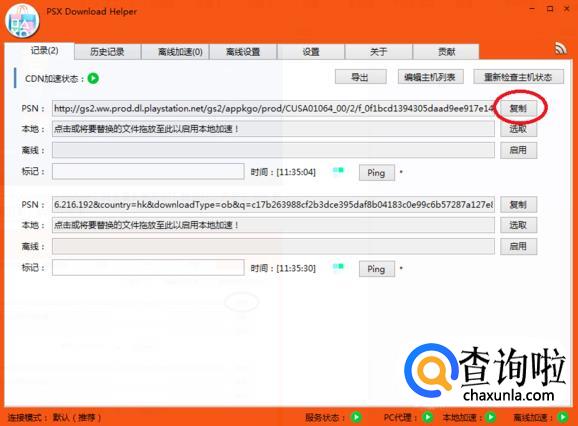 然后我们在电脑上点开PSXDownloadHelper,就会看到截取的下载地址。然后在PSN后面点击复制,把地址复制到下载软件那里(有些时候会弹出两个地址,你都复制下载,如果是同一个文件就下载其中一个就行了)