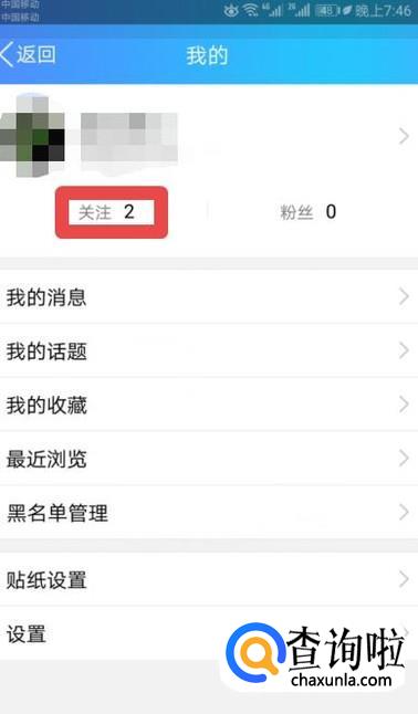 弹出的界面,我们点击已关注;