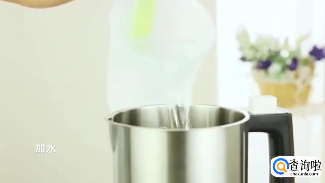 我们加入的清水要在豆浆机外的刻度线之间,然后我们插上电源。