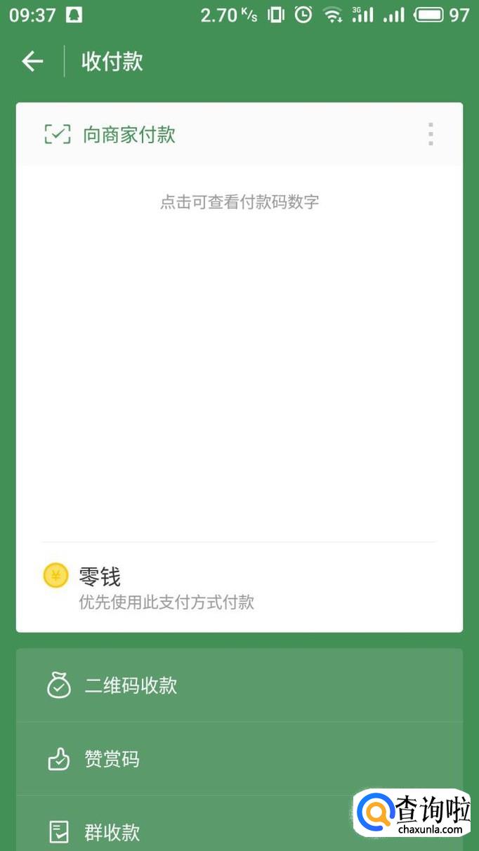 进入收付款界面,即可查看到个人二维码,准备使用。