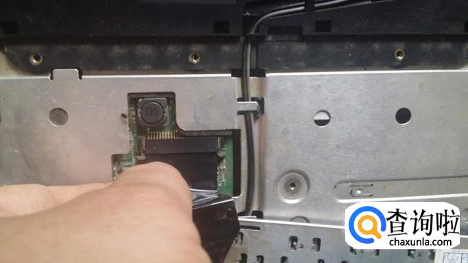 取下电源开关面板,还不能拿下键盘,因为底部还有固定键盘的螺丝。