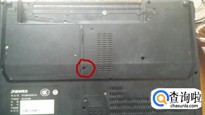 先把笔记本底部朝上反过来,取下电池,会看到电池仓里有四个小螺丝,这是固定电源开关面板的,用螺丝刀取下来。