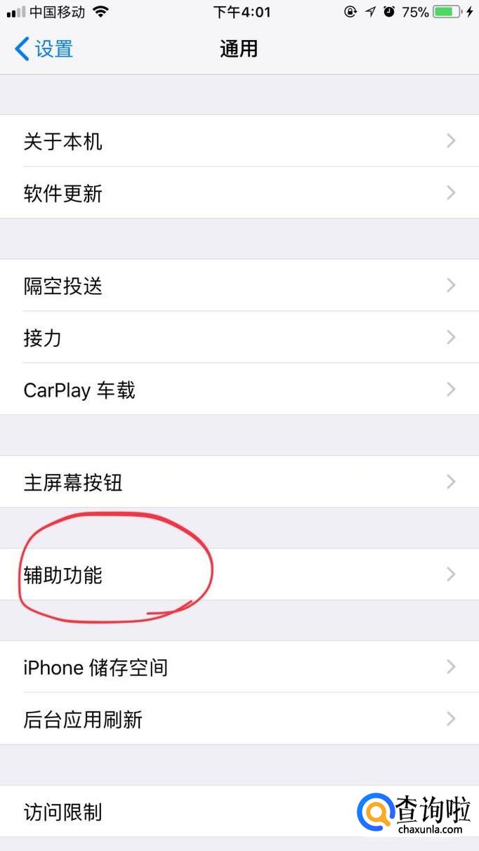 进入后,找到就在下面一点点的“辅助功能”选项。
