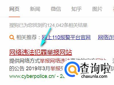 首先在搜狗搜索引擎中输入网络违法犯罪举报网站并点击回车键。