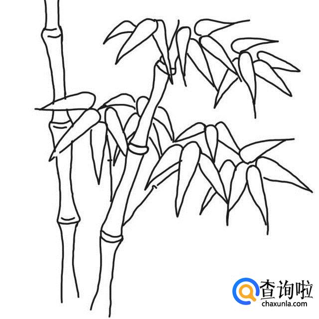 先画出竹节作为一个框架,再在竹节上画上茂盛的竹叶即可。