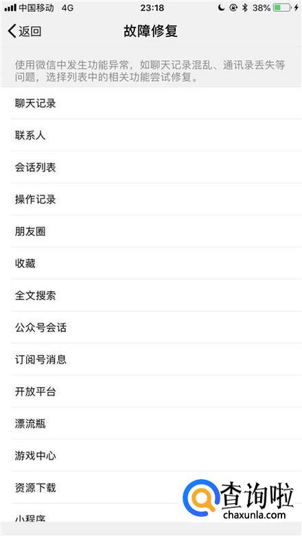 通过以上操作,我们就成功进入微信的故障修复界面了。
