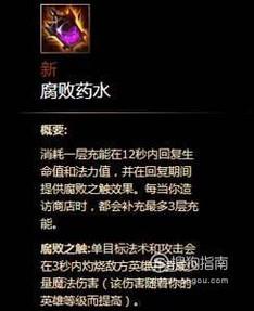 出门装:腐败药水赖线,每次造访商店时会补充到三层充能,为对线期节省不少经济