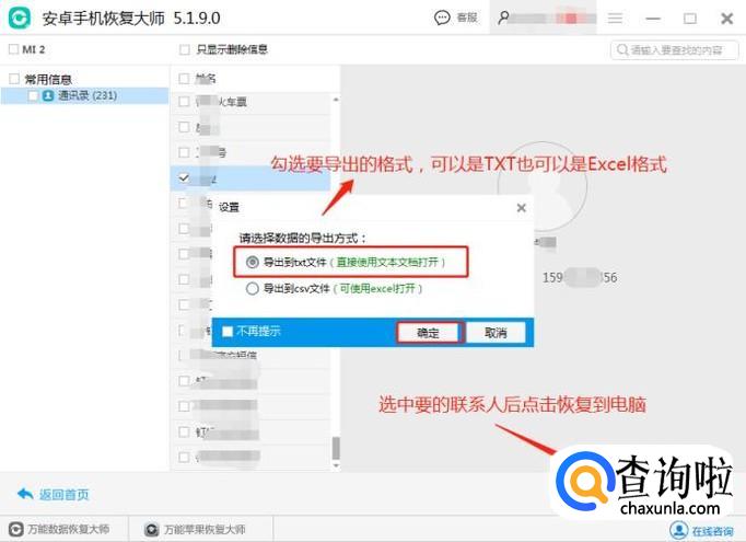 完成扫描后,点击左侧的通讯录查看详细的数据,可以直接预览到扫描出来的号码,找回自己误删的联系人后,选择后直接恢复到电脑上,也可以直接将联系人号码保存到手机上。