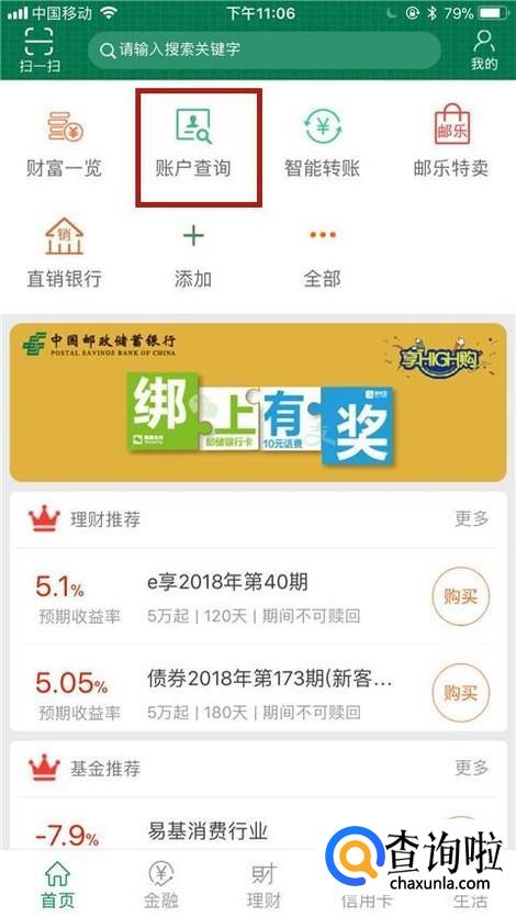 你也可以点击账户查询对我们的账户进行相关的查询工作。你学会了吗?赶快动手试一试吧。