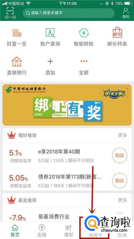 你可以点击信用卡进行相关的信用卡操作,如下图所示。