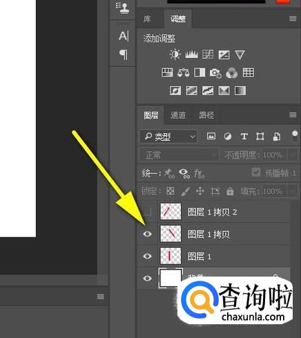 接着,在时间轴这里,复制帧,再来到图层面板这里,把上面第二层眼睛打开。