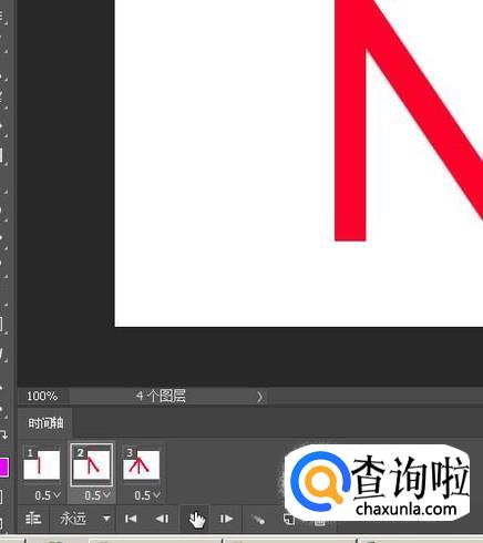 然后,分别新建了三个图层,分别画了三个大小颜色一样的矩形,只是位置上有所不同。接下来,给这三个矩形制作从右到左摆的逐帧动画。