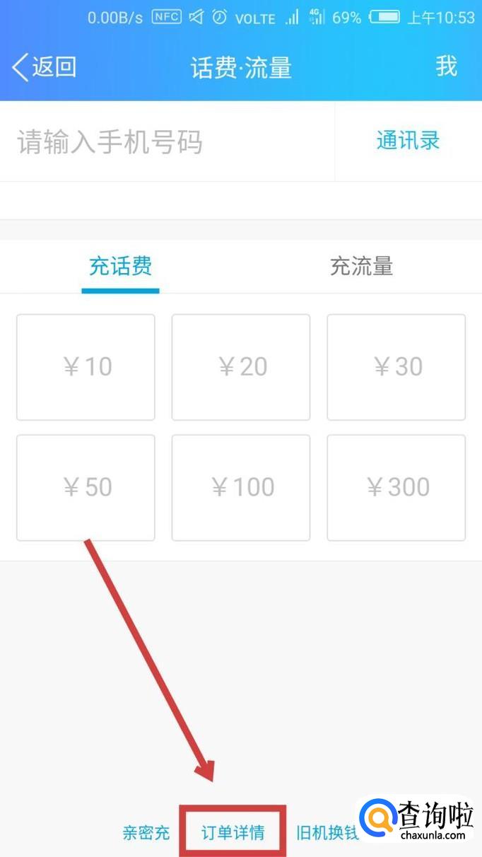 然后在界面最下方的小蓝字中找到“订单详情”,点击进入。
