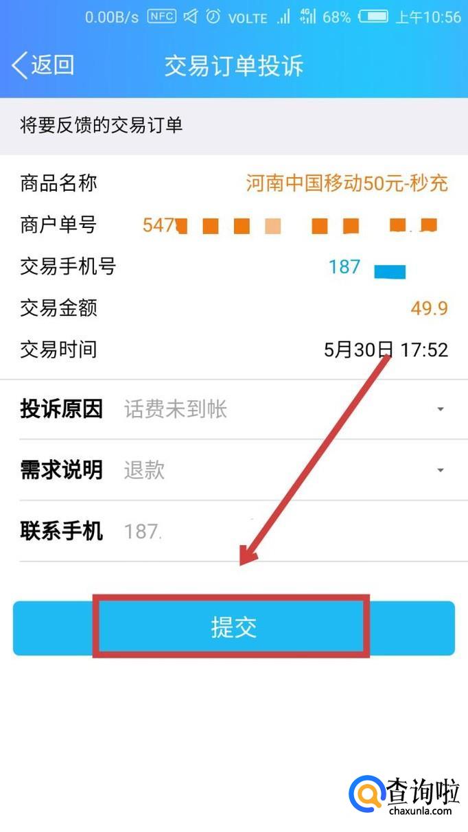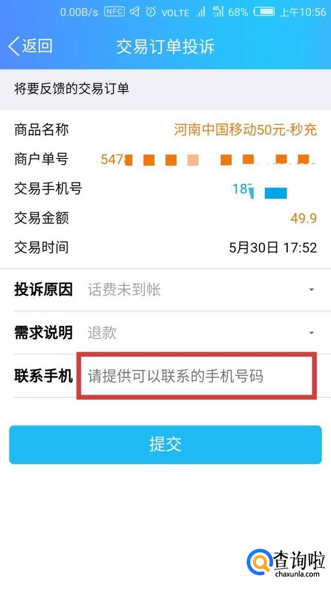 然后再把你的手机号码填写上去,客服可能会通过这个号码联系你。