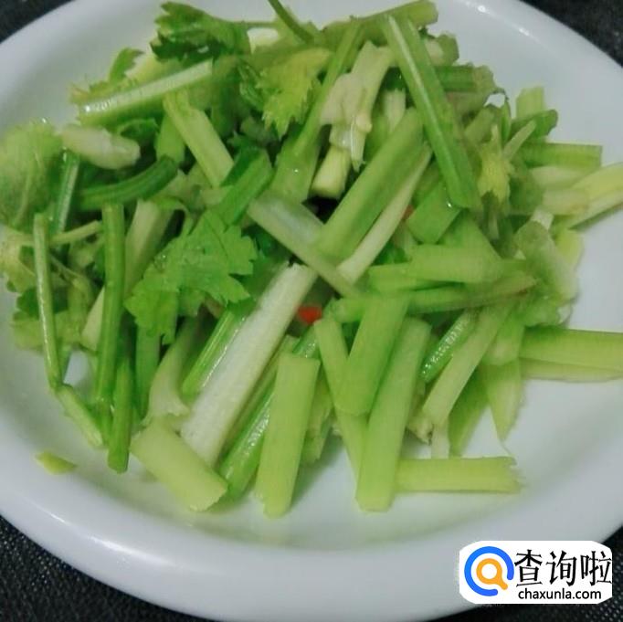 香芹摘掉叶子,切掉根,再切成段备用。