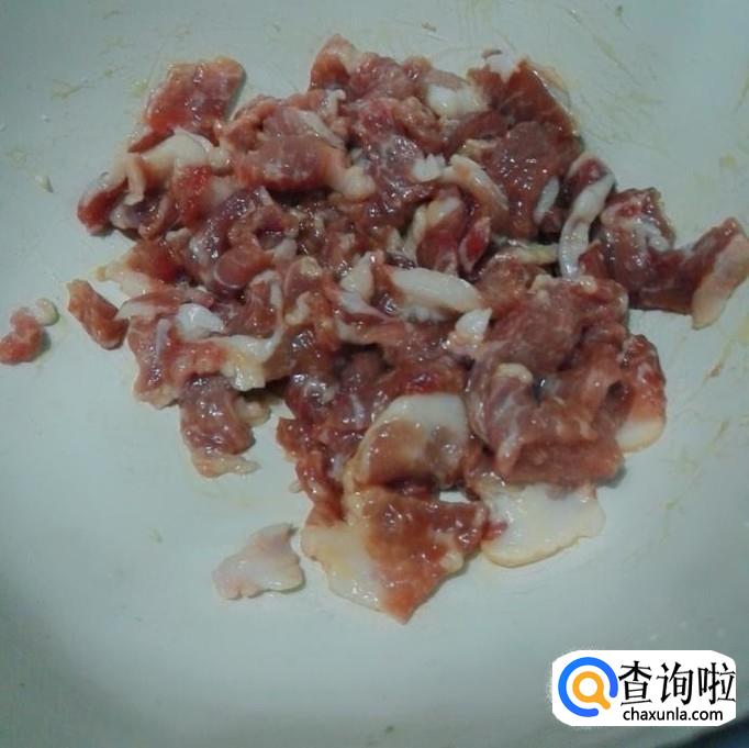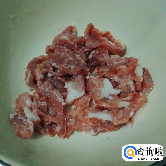 先氢猪肉洗干净再切成片,再放生粉,蚝油,鸡粉,盐搅拌均匀后腌 十分钟。