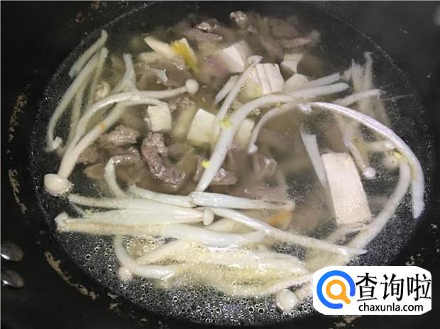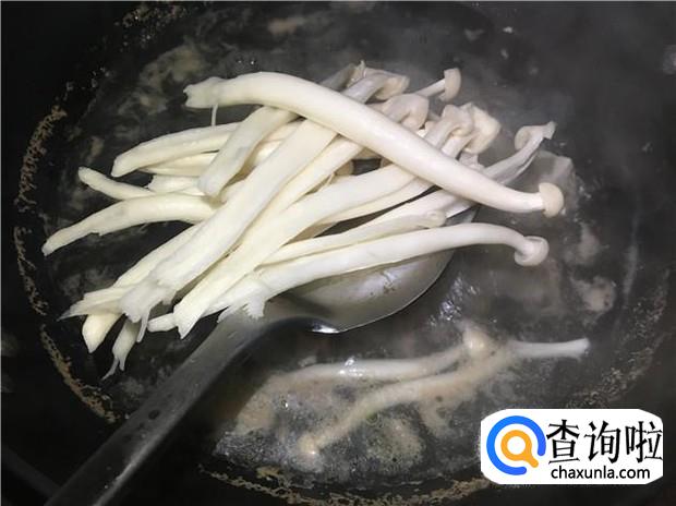 最后把海鲜菇倒入锅中,把海鲜菇煮熟即可。