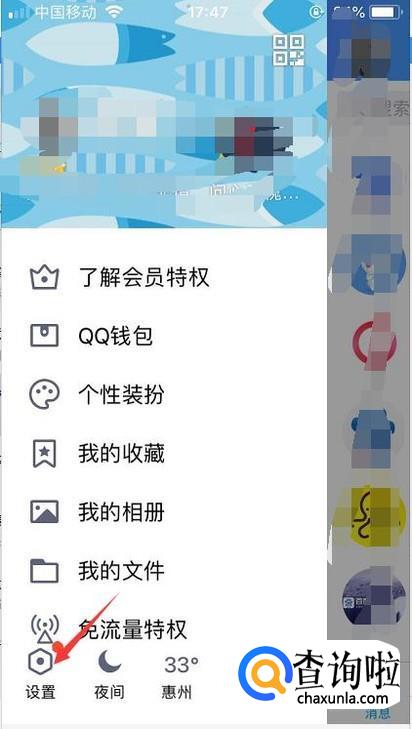 首先我们成功登录qq后点击左上角的头像进入到设置的功能。