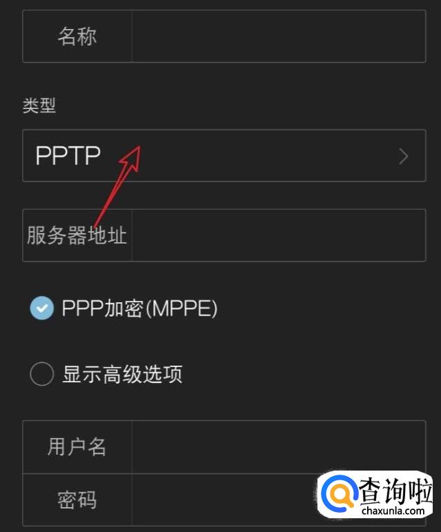 然后在类型中选择PPTP。