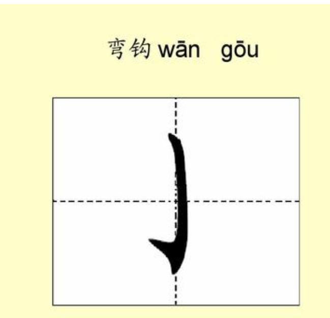 注意:既然是“弯钩”,要有一个弯出去的弧度,所以起笔之后笔锋就要往右下角弯出去。