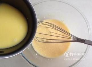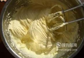 将鸡蛋打散备用,往黄油中加入糖粉搅拌均匀,然后加入蛋液,蛋液要多次少量加入,打发至蓬松。
