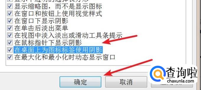 打开后,就可以看到,是这里的图标使用阴影的选项勾选上了,点击取消勾选就行了。
