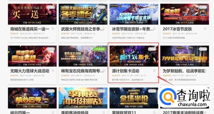 首先打开官方首页,找到【活动中心】点击,再点击【全部活动】,往下翻找到【原计划集卡活动】,如下图: