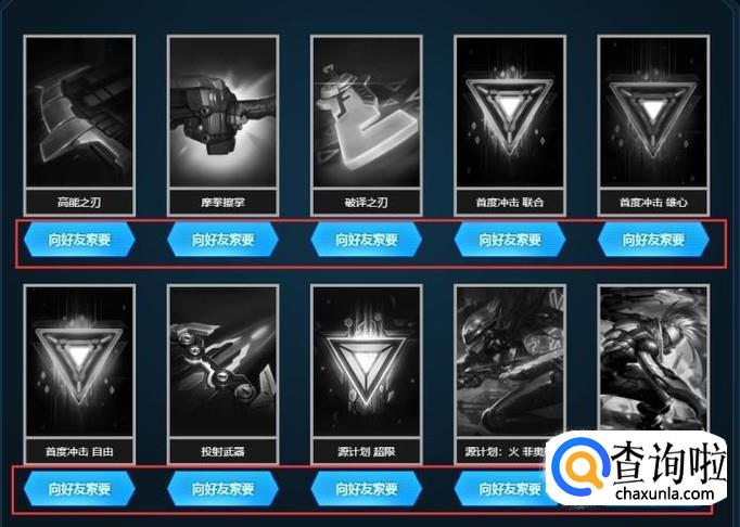 以下是未收集到的卡片,当你搜集到了图片就会变为彩色哦,你也可以用【向好友所要】的方式来收集卡片哦。如下图: