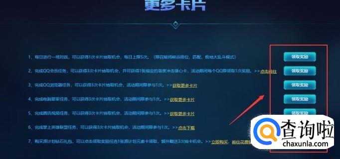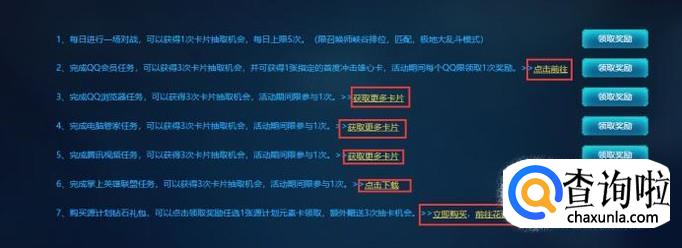 当你每天完成了以下任意一个任务,都可以点击右侧的领取卡片抽取资格,如下图: