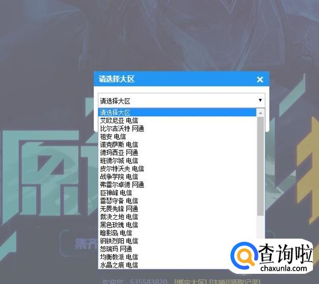登陆账号以后需要绑定相应的大区,如下图: