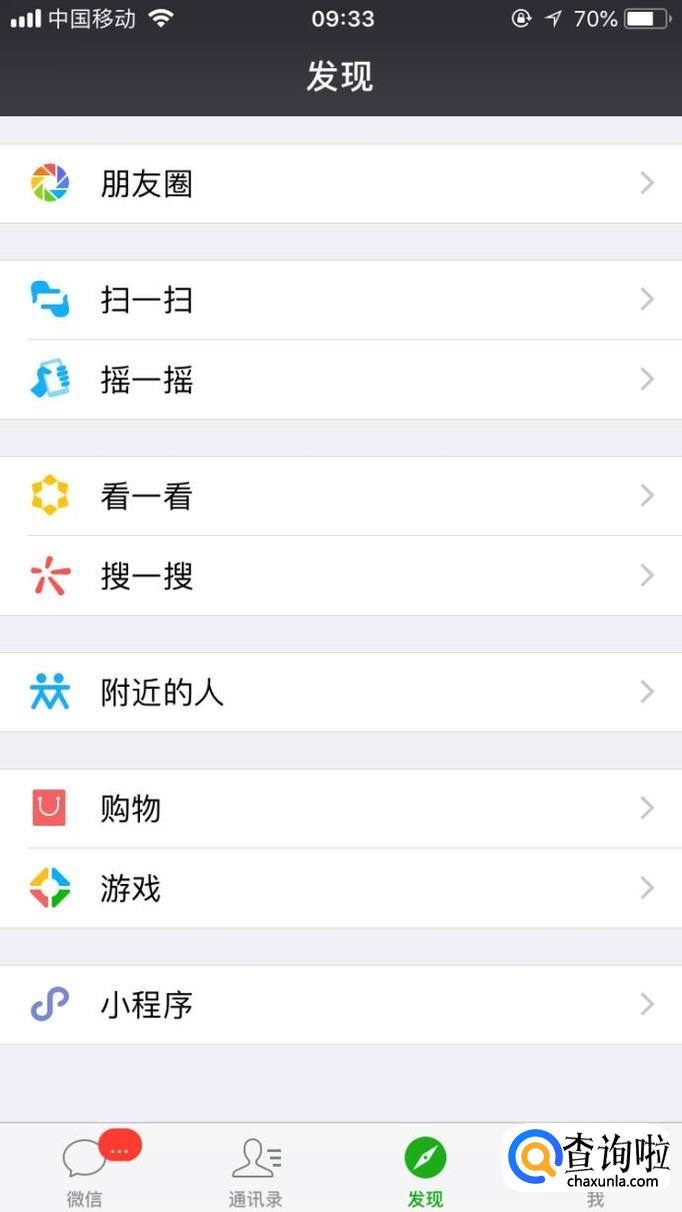 打开微信APP,打开“发现”页面中的小程序;