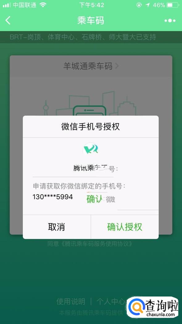 对“腾讯乘车码”进行授权,绑定手机号码并验证;