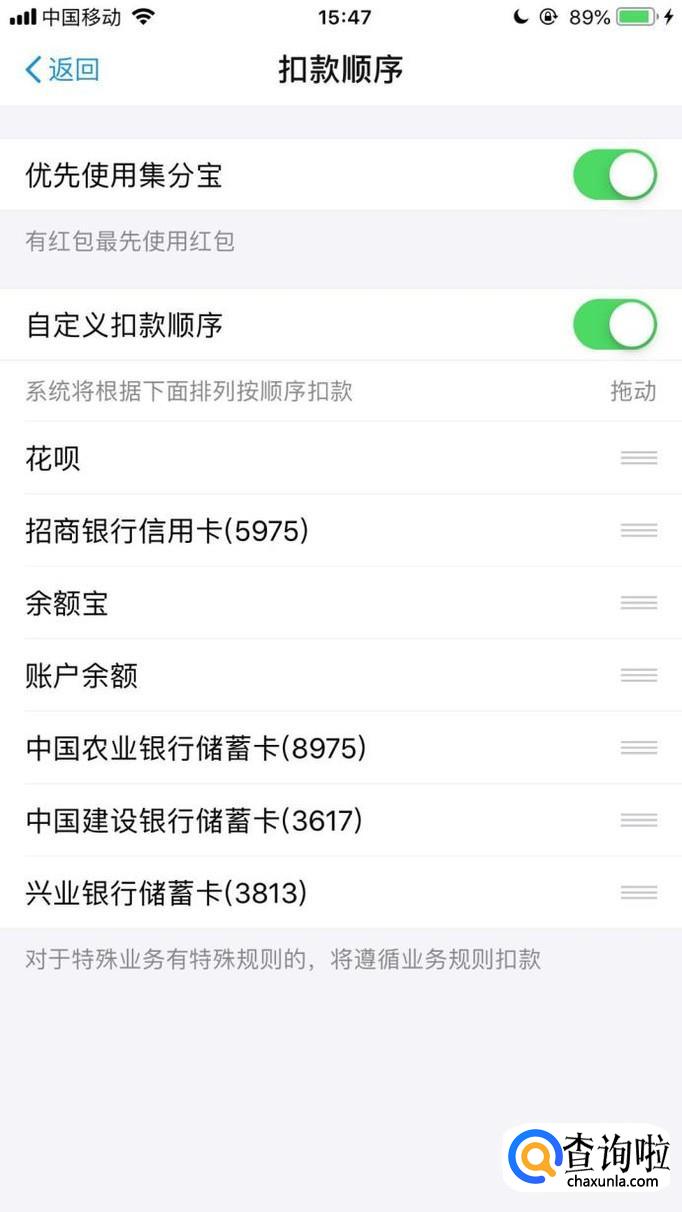 最后根据我们的需要调整扣款顺序就可以了。