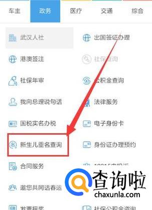 进入之后,找到“新生儿重名查询”,点击并进入,如图所示。
