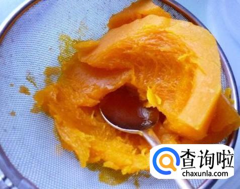 将蒸好的南瓜用小勺挖出南瓜肉放在碗中,用勺背压成泥,加入少许温开水搅成粥状,就可以给宝宝吃了。